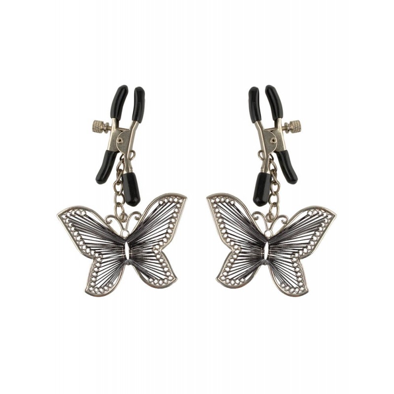 Κλιψάκια για τις θηλές με βίδα αυξομείωσης της πίεσης, μαζί με πανέμορφες ασημένιες πεταλούδες να κρέμονται χαϊδεύοντας ευχάριστα το στήθος σας και προκαλώντας τα βλέμματα.