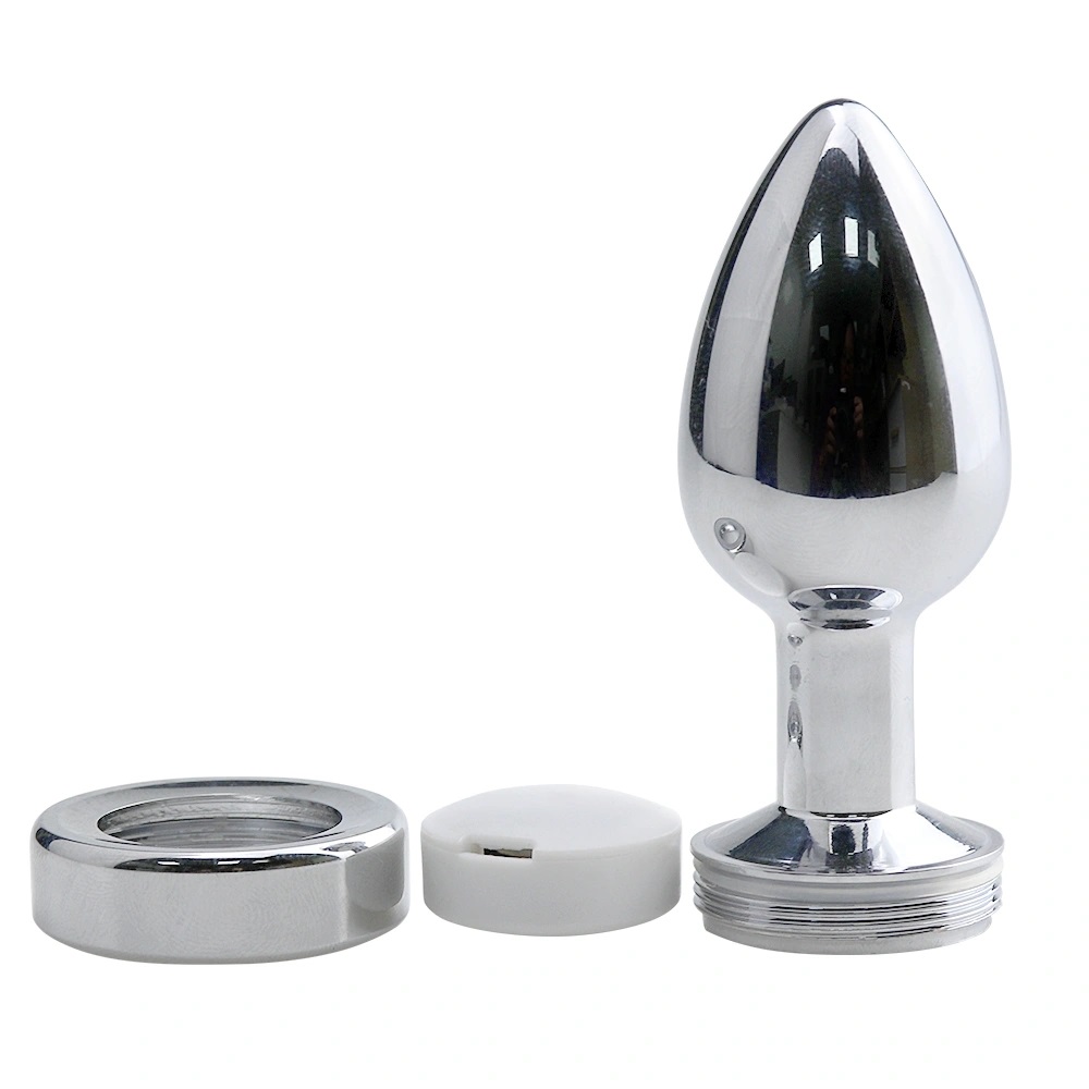 This jewel plug features a silver aluminum body with a smooth, polished surface and a glowing LED base, offering a stylish and exciting experience.