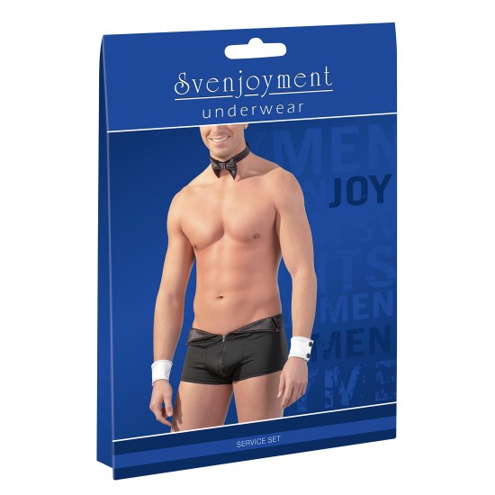 Πάρτε τον ρόλο του σέξι σερβιτόρου, με αυτό τον σέξι συνδυασμό από σορτς με μπροστινό φερμουάρ, παπιγιόν και μανσέτες.