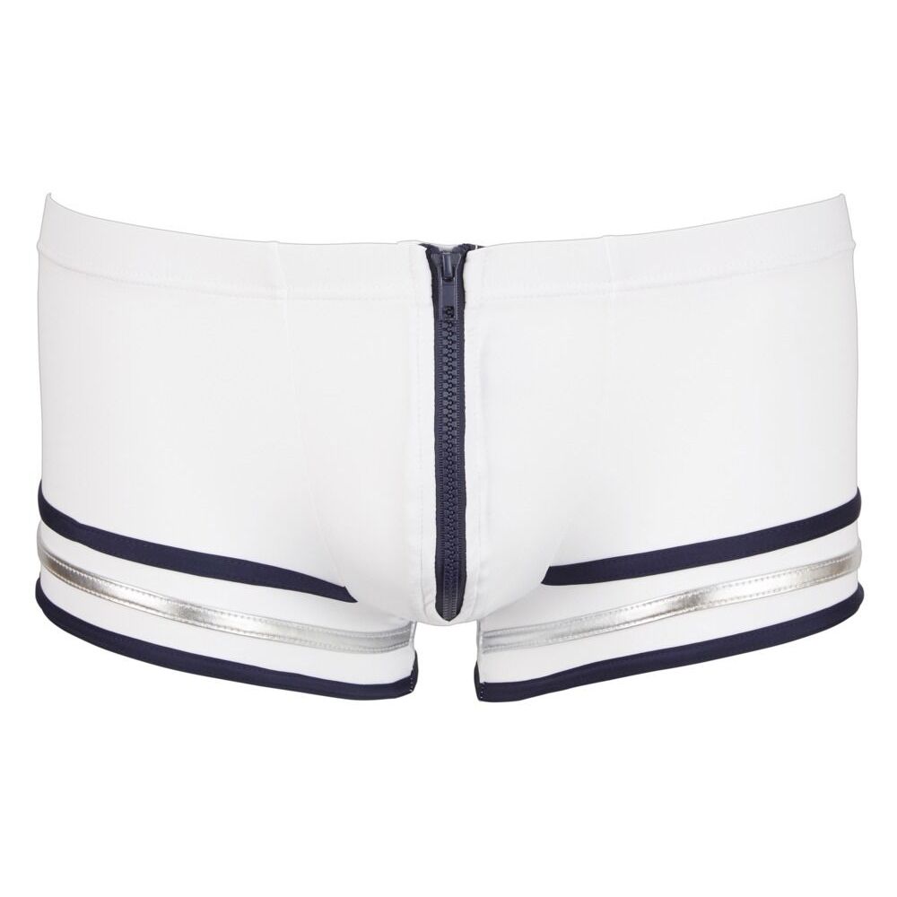 Μαλακό μπόξερ από μικροΐνες σε μοντέρνα sailor εμφάνιση. Με πολύ φαρδύ φερμουάρ και 3 διακοσμητικές ρίγες γύρω από τα πόδια.